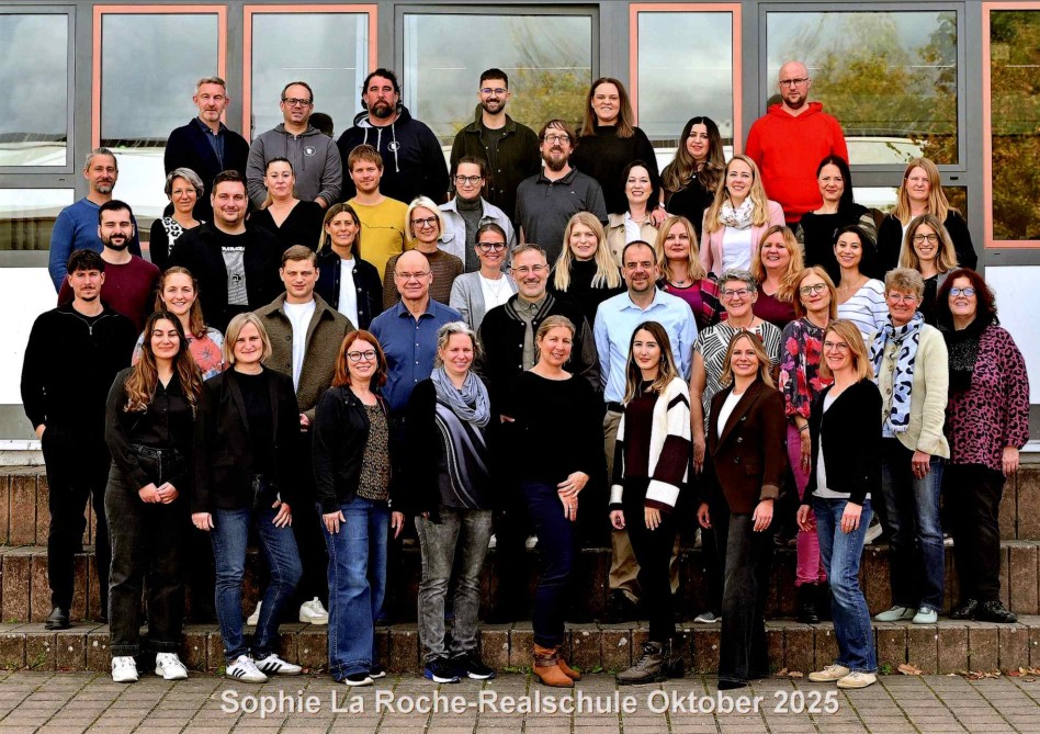 2.Reihe (v.l.n.r): Herr Poetsch, Frau Carle, Herr Maier, Herr Mayer (Konrektor), Herr Samietz (Schulleiter), Herr Schmidt (2. Konrektor), Frau Bärlin (Sekretärin), Frau Gürtler, Frau Braun, Frau Dieter